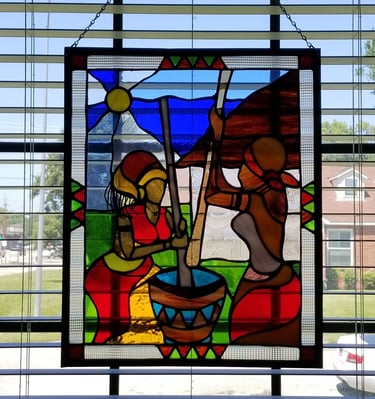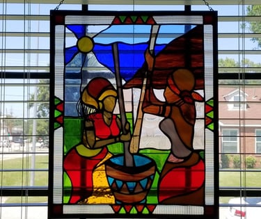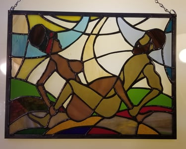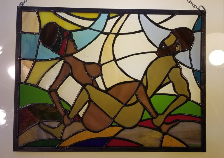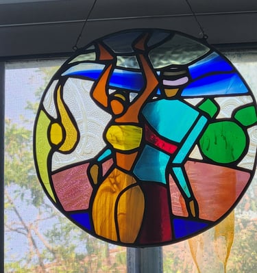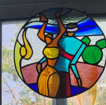 Coolee's stained glass pieces capture light beautifully, with a unique urban afro design, that brings peace and joy to any space.